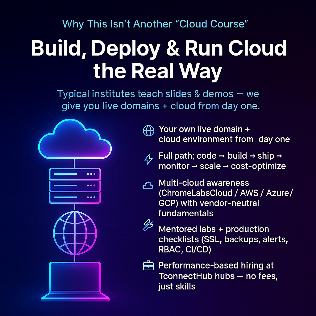 Powered by ChromeLabsCloud. Don’t waste money on institutes — TconnectHub gives you the foundation, mentorship, and resources to grow your career & build startups.